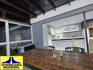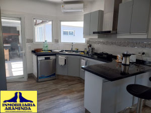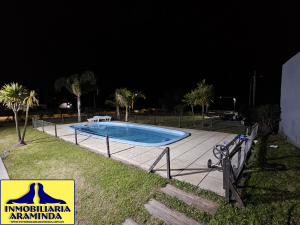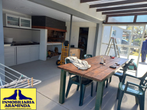 En Balneario Araminda se vende impresionante chalet totalmente reciclado a nuevo ,son dos padrones uno en primera línea donde está ubicada la piscina climatizada y el parque, el otro en segunda línea donde se encuentra la casa que consta de : 3 dormitorios- 3 baños y una cocina americana de última generación- living comedor con vista al agua , el dormitorio principal también tiene hermosa vista al mar - cortinas automatizadas - barbacoa con cerramiento de vidrio - lavadero y deposito donde se encuentra la bomba de calor de la piscina - garage con porton vasculante - el agua caliente de la casa ( baños y cocina) depende de 2 tanques de gas de 45 kg cada uno - la casa está climatizada con equipos de aire acondicionado - las aberturas son de aluminio con mosquiteros ,incluso puerta mosquitera en la cocina - el predio de 1000 mts se encuentra totalmente cercado - seguridad con sistema de alarma y cámaras, esta propiedad es para quien realmente desee vivir con el mayor confort en un lugar tranquilo.y acogedor de nuestra hermosa costa uruguaya a tan solo 45 minutos de la ciudad de Montevideo - a 15 minutos de Atlantida y a 10 de Piriapolis.