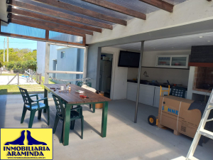 En Balneario Araminda se vende impresionante chalet totalmente reciclado a nuevo ,son dos padrones uno en primera línea donde está ubicada la piscina climatizada y el parque, el otro en segunda línea donde se encuentra la casa que consta de : 3 dormitorios- 3 baños y una cocina americana de última generación- living comedor con vista al agua , el dormitorio principal también tiene hermosa vista al mar - cortinas automatizadas - barbacoa con cerramiento de vidrio - lavadero y deposito donde se encuentra la bomba de calor de la piscina - garage con porton vasculante - el agua caliente de la casa ( baños y cocina) depende de 2 tanques de gas de 45 kg cada uno - la casa está climatizada con equipos de aire acondicionado - las aberturas son de aluminio con mosquiteros ,incluso puerta mosquitera en la cocina - el predio de 1000 mts se encuentra totalmente cercado - seguridad con sistema de alarma y cámaras, esta propiedad es para quien realmente desee vivir con el mayor confort en un lugar tranquilo.y acogedor de nuestra hermosa costa uruguaya a tan solo 45 minutos de la ciudad de Montevideo - a 15 minutos de Atlantida y a 10 de Piriapolis.